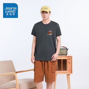 热风夏季新款男士印花百搭纯棉上衣舒适短袖流行宽松T恤男简约