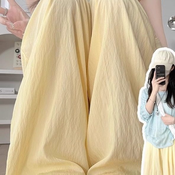Q日系山本裤女春夏季2025新款垂感褶皱慵懒休闲宽松直筒阔腿裤