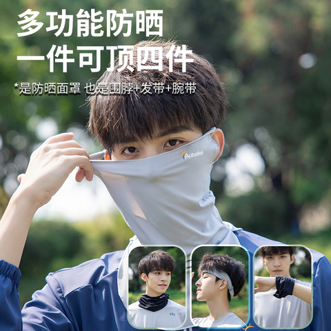 防晒面罩男口罩冰丝面巾遮阳遮全脸脖套骑行围脖外卖防紫外线夏季