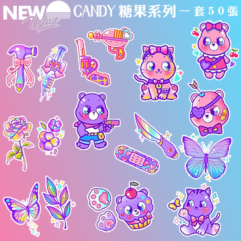 趣味俏皮迷你糖果小熊纹身贴纸