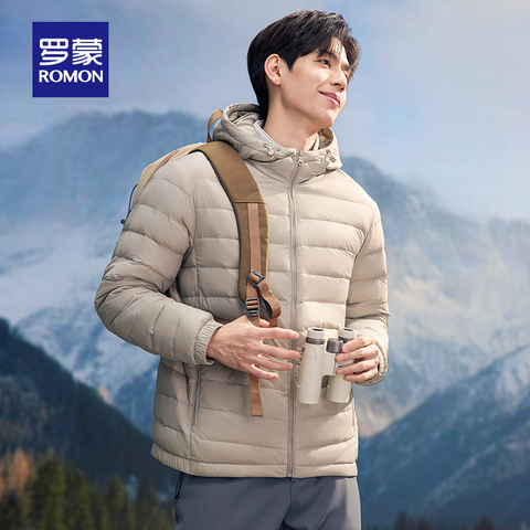 罗蒙2025秋冬季新款轻薄羽绒服男短款连帽轻便运动防风时尚外套潮