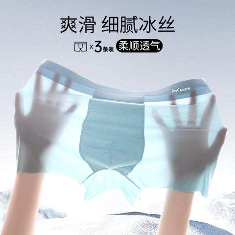 【猫人品牌】男人优选,冰丝面料拒绝瘙痒闷热,AAA抗菌内档,健康透气,舒适加倍。活性印染不掉色,零感无痕,舒爽透气,无侧缝剪裁,3D立体囊袋设计,更符合男性健康标准,让您穿的更放心!