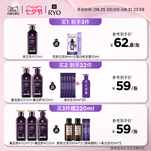 吕紫吕控油强韧洗护套装 【售价】:¥85.00 【券后】:¥59.00 【优惠券】:¥26 推荐理由:【官方正品】RYO吕紫吕洗发水控油保湿强韧护发素洗头膏 👉复制这条信息打开【手机淘宝APP】即可领券购买:/