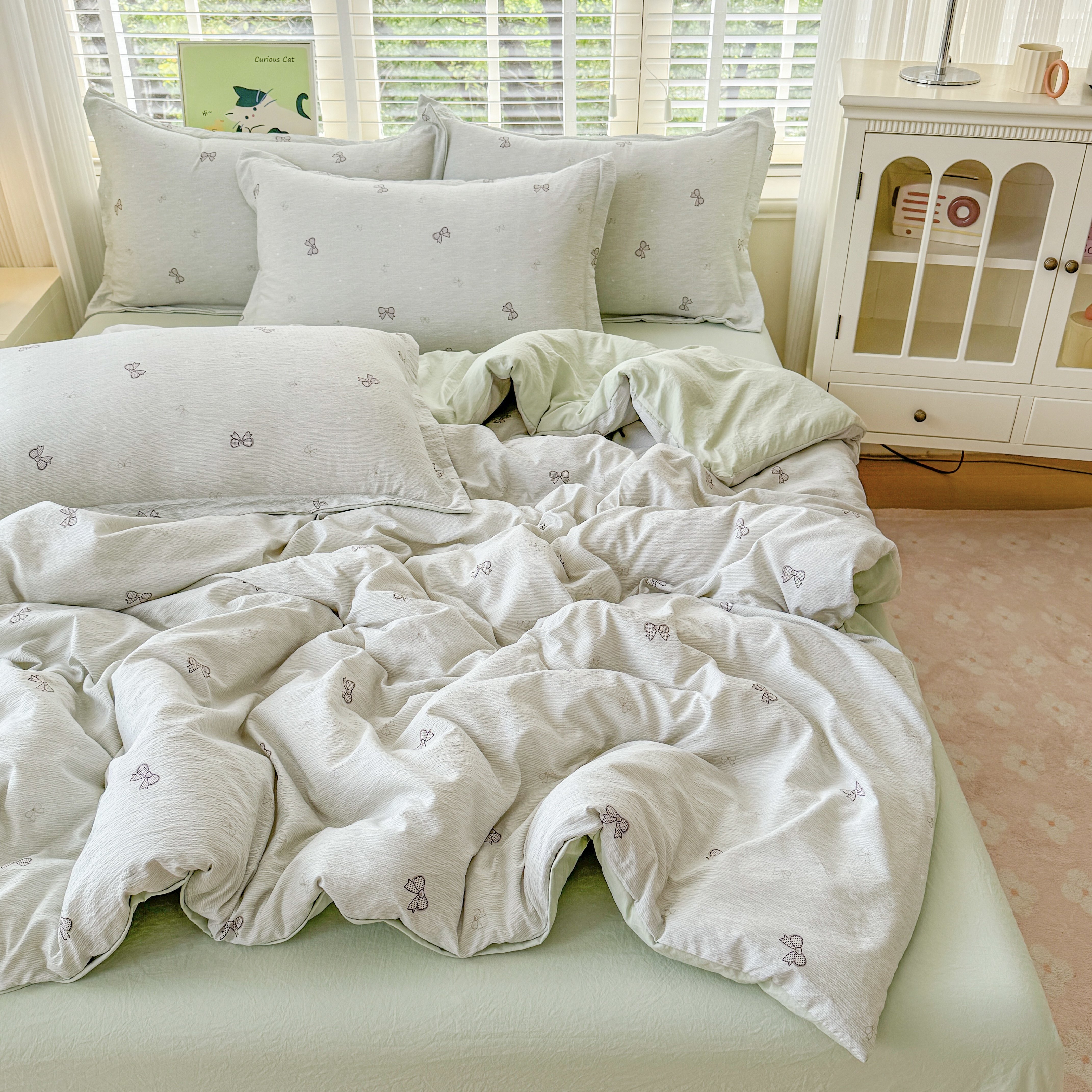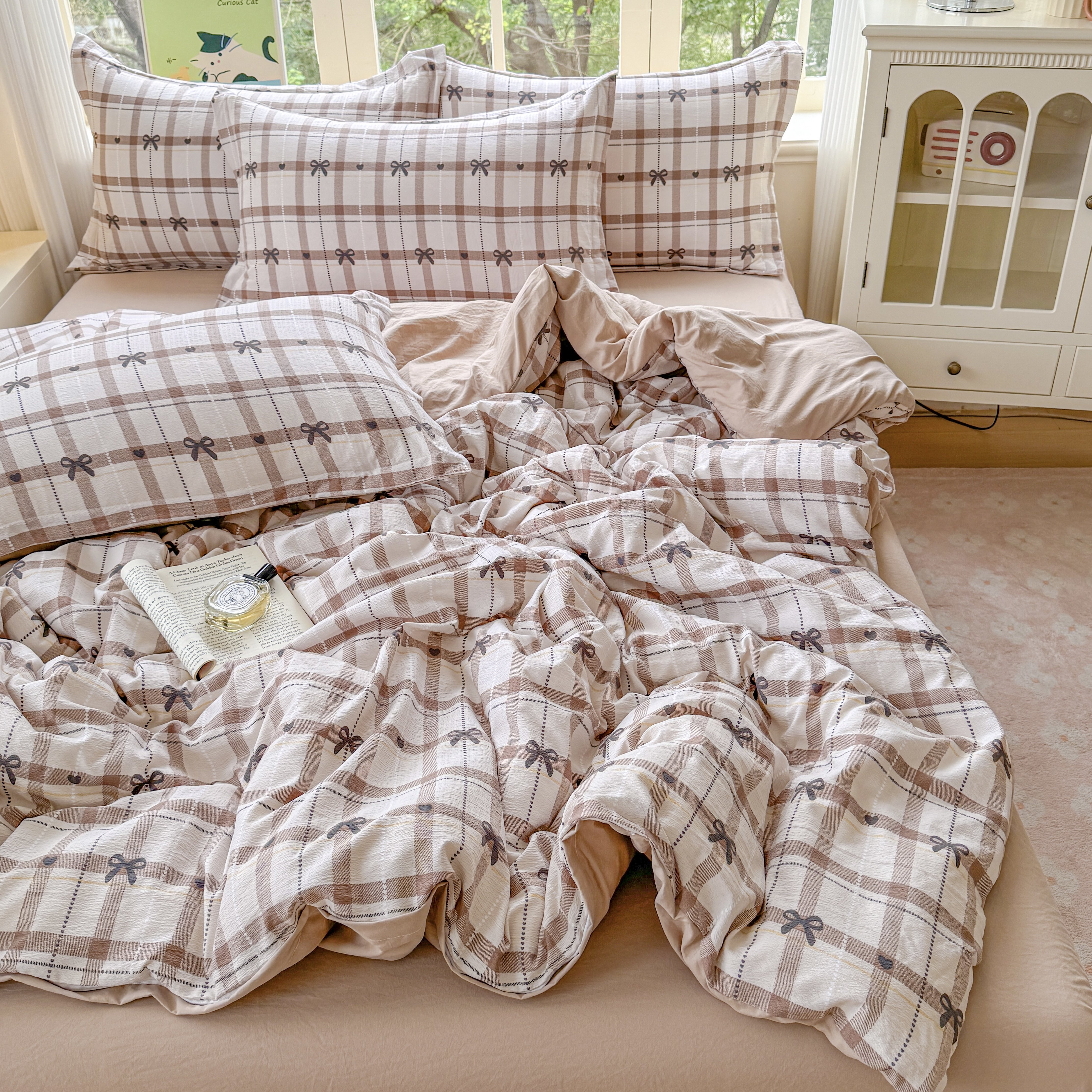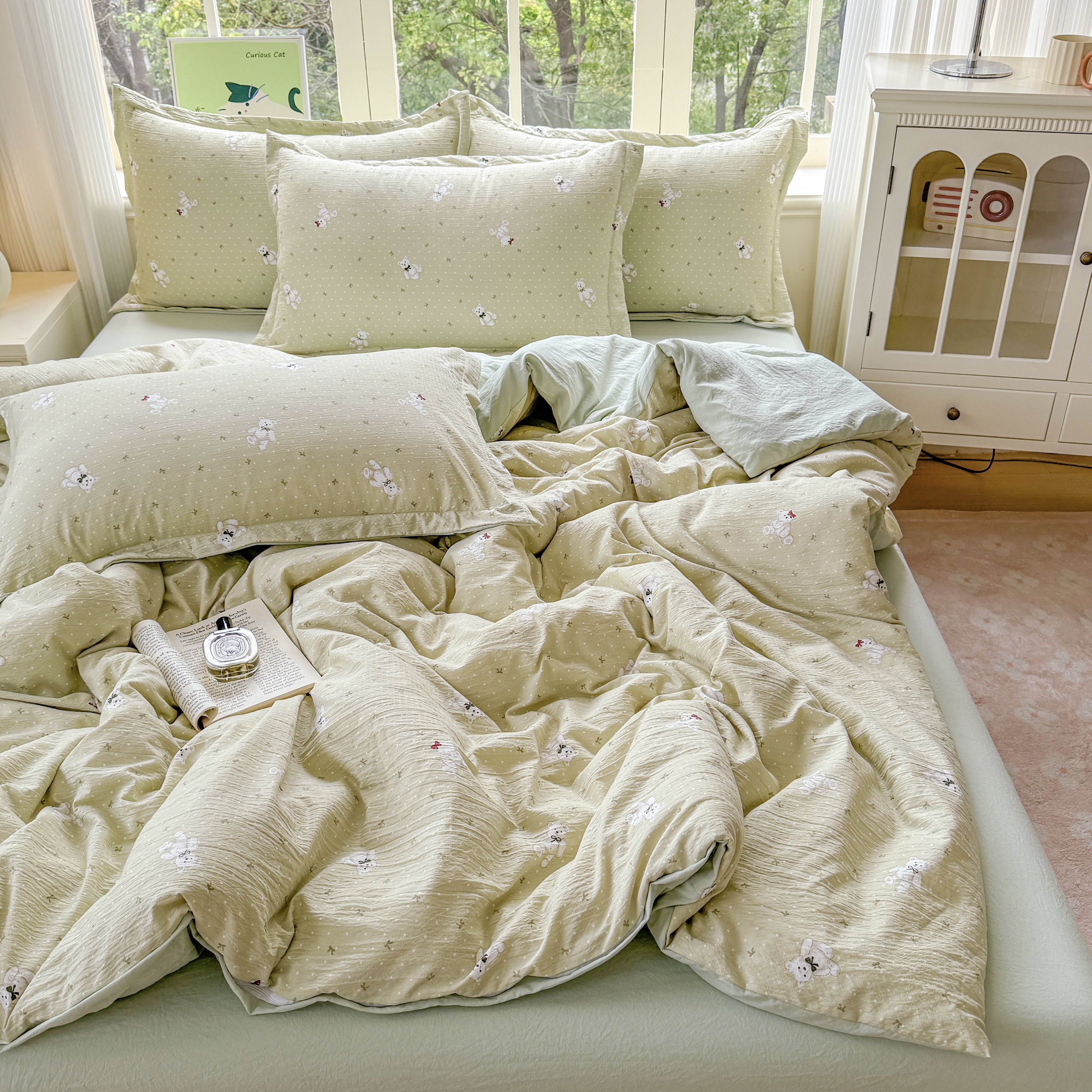 新款母婴级抗菌有氧木棉皱皱沙三件套四件套小清新印花四季款
