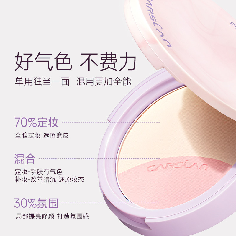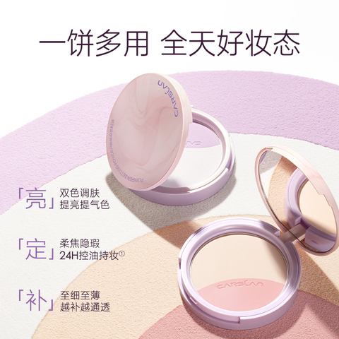 一饼多用,全天好妆态。双色调肤,好气色不费力。全脸定妆,遮瑕磨皮。融肤有气色,-改善暗沉还原妆态,局部提亮修颜,打造氛围感。轻薄不假面 ,不挡底妆原有光泽
