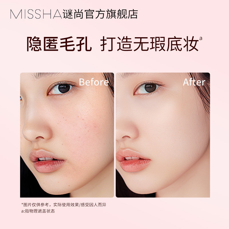 谜尚魅力亲肤妆前乳,肌肤伪素颜,打造自然裸妆感,匀净透亮,水润服帖,柔焦毛孔,润护加成,匀亮修颜,妆出好气色!