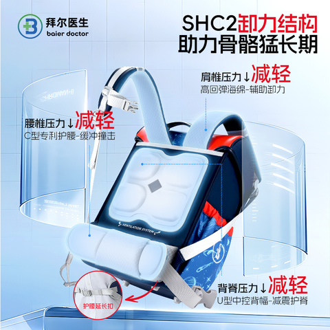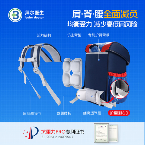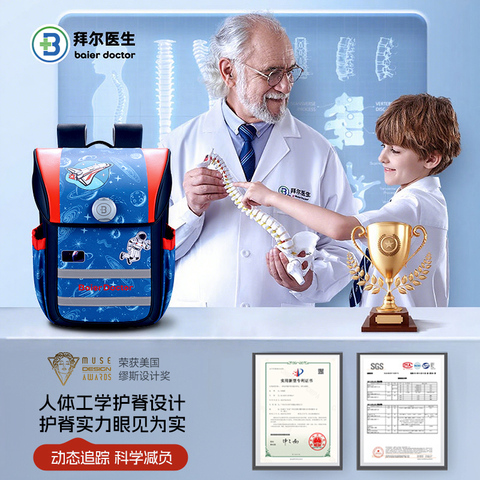 拜尔医生儿童书包女生小学生书包1-3-6年级轻便减负护脊双肩包男