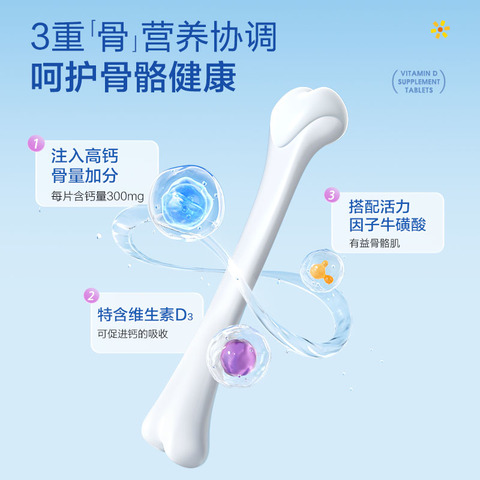 汤臣倍健旗下品牌,源自澳洲专注营养补给80年。钙D协同搭配活力因子牛磺酸,有效促进钙吸收,清新酸奶口味。