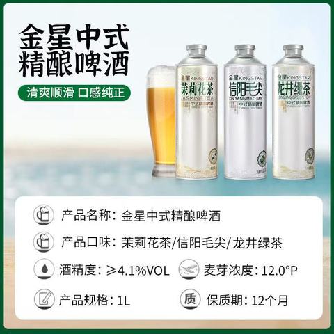 金星毛尖啤酒西湖龙井中式精酿啤酒1L*6瓶整箱装官方正品