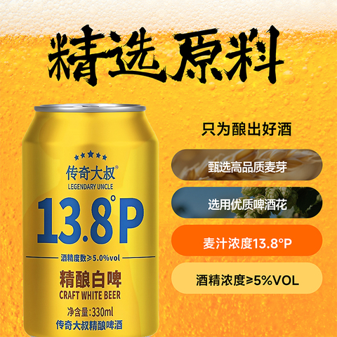 传奇大叔精酿白啤原浆啤酒全麦小麦麦芽啤酒夏季畅饮整箱批发解暑
