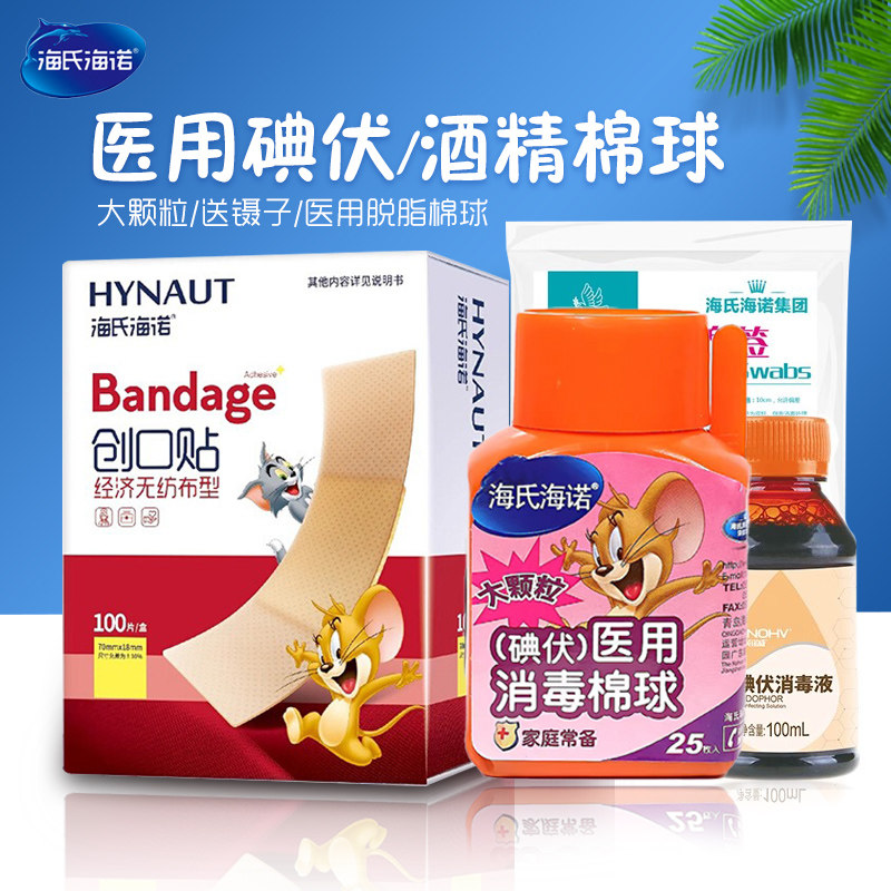 海氏海诺医用棉签碘伏消毒液碘伏棉球创可贴伤口贴医用家用应急