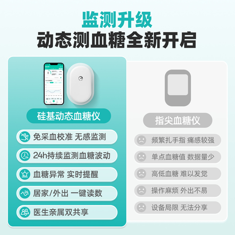 [回硅计划]硅基动感动态血糖仪免扎手指24h实时血糖监测旗舰店2盒