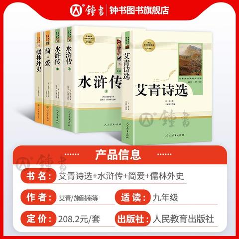 艾青诗选和水浒传人民教育出版社九年级上册正版原著完整版唐诗三百首简爱儒林外史人教版语文配套名著书目初三课外阅读书籍全套