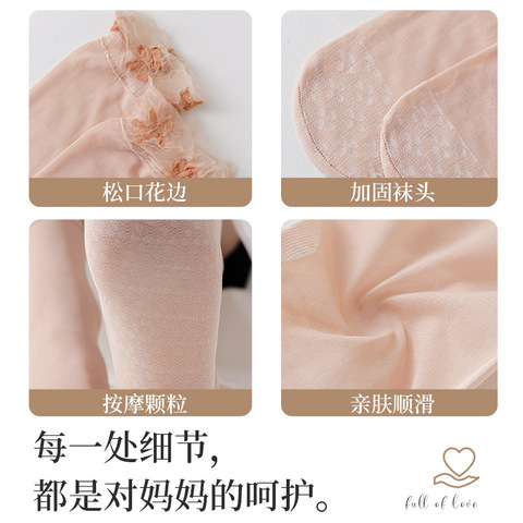 夏季短丝袜松口蕾丝花边妈妈丝袜脚尖加固脚底吸汗防滑棉底丝袜女