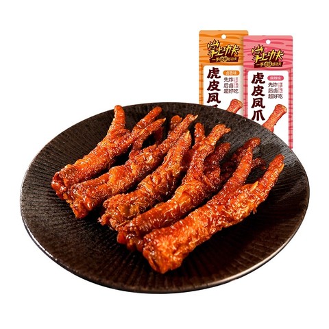 掌上功夫虎皮凤爪,卤味鸡爪,肉类解馋香辣鸡脚,休闲零食,小吃速食,软糯皮酥,一嗦脱骨,鲜香肉嫩,一口下去满满的肉~到手价:2.9元/2支装