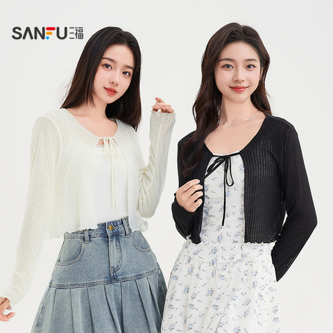 【三福】夏秋两季短款针织衫女2025新款短款外套上衣开衫百搭款!