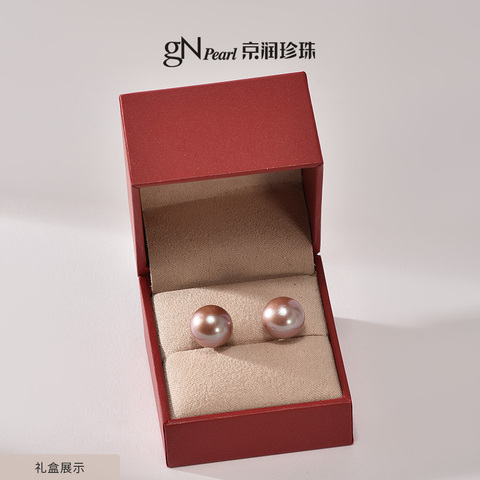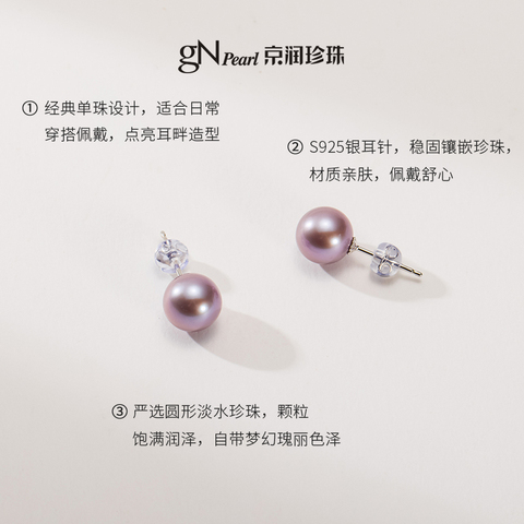京润珍珠粉紫色圆形珍珠耳钉