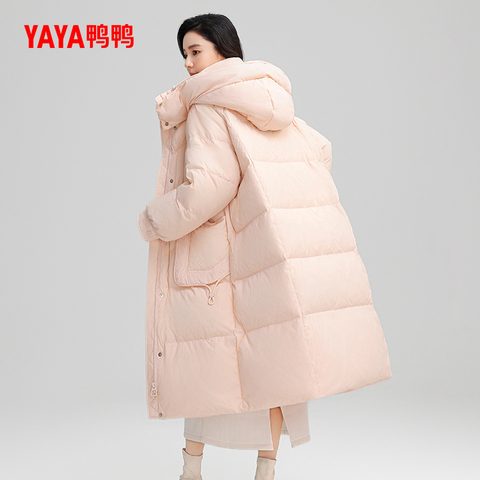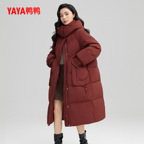 鸭鸭时尚休闲长款连帽羽绒服女