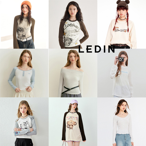 【会员内购夏季清仓】乐町韩系清甜条纹宽松落肩圆领印花长袖T恤