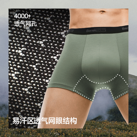 【页面价99,立减20元】蕉下男士肤感莫代尔内裤,透气平角短裤头,抗菌不卡裆,防夹臀四角内裤