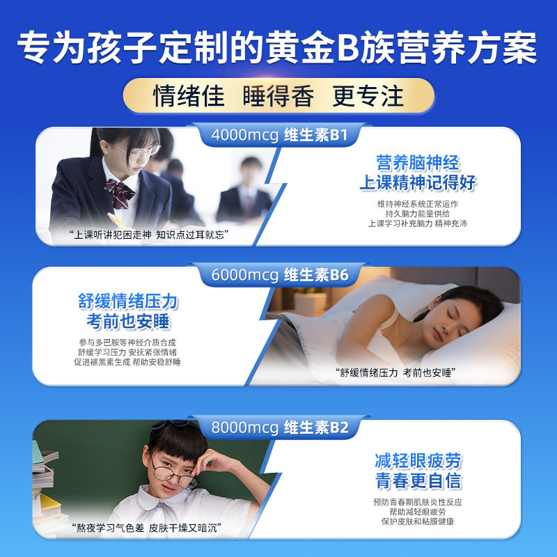 一片管一天一粒顶六粒海外口碑认证核心缓释速崩双技术天然原料8大复合VB,健康无负担!缺少B族痛楚来找90%中国成人缺少维生素B族,负担在默默加重高能维B天花板天然原料8大复合VB,核心缓释速崩双技术一片管一天速崩层:元气速攻焕然一新!