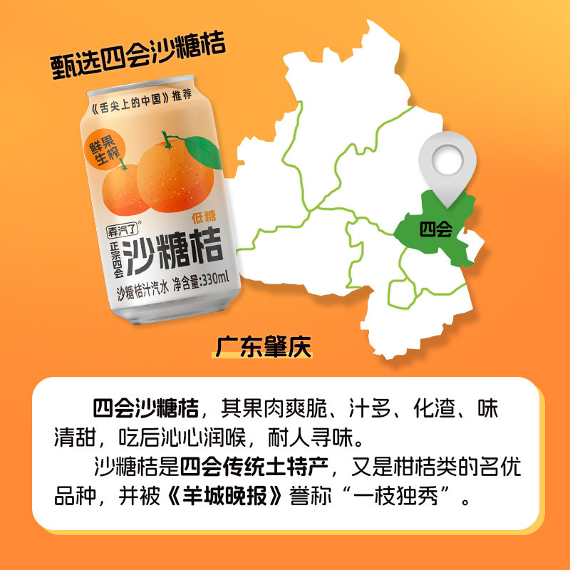 沙糖桔原浆,NFC非浓缩还原果汁工艺,果汁与气泡交融,劲爽带感,鲜果生榨,低糖配方,畅饮轻负担